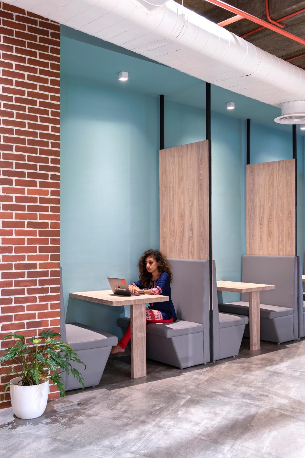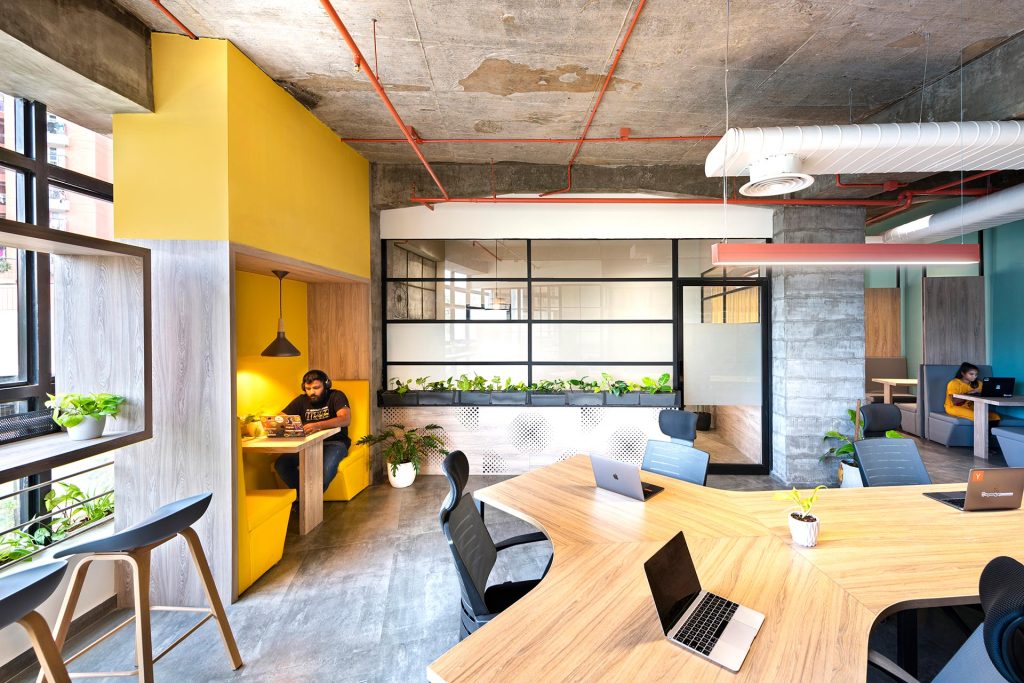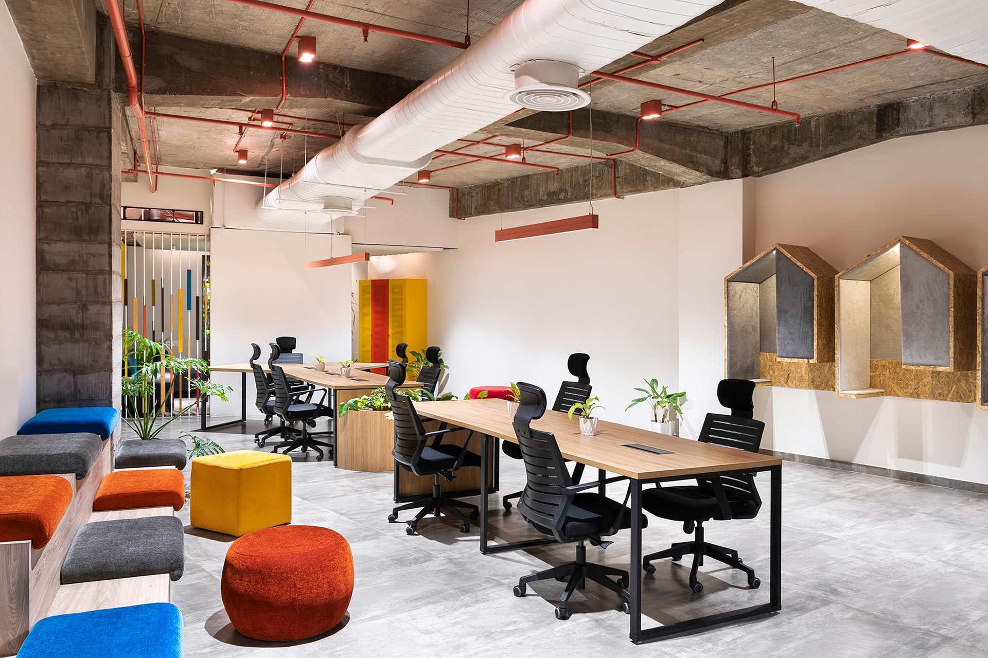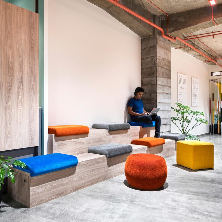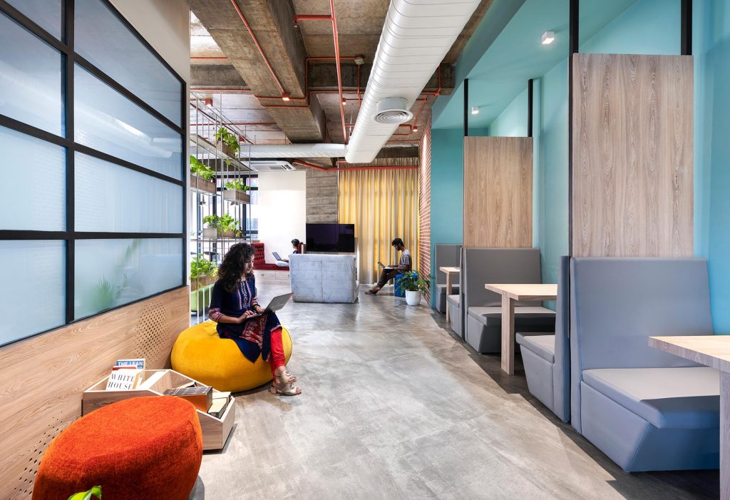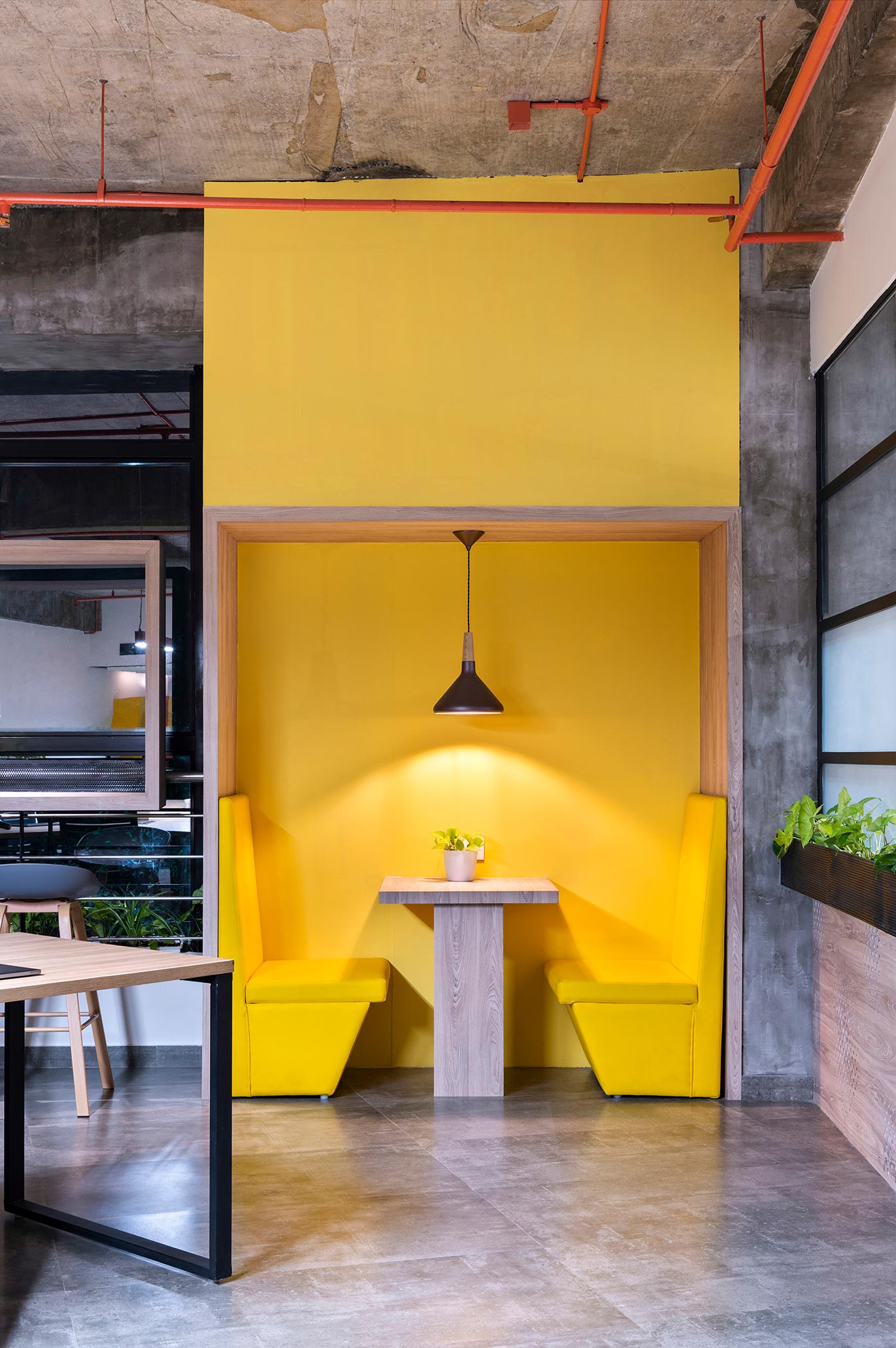 A stress-free atmosphere for aspiring young technology professionals was what the architects wanted to express through their interiors and they seem to have achieved it through the open, bright colored space.